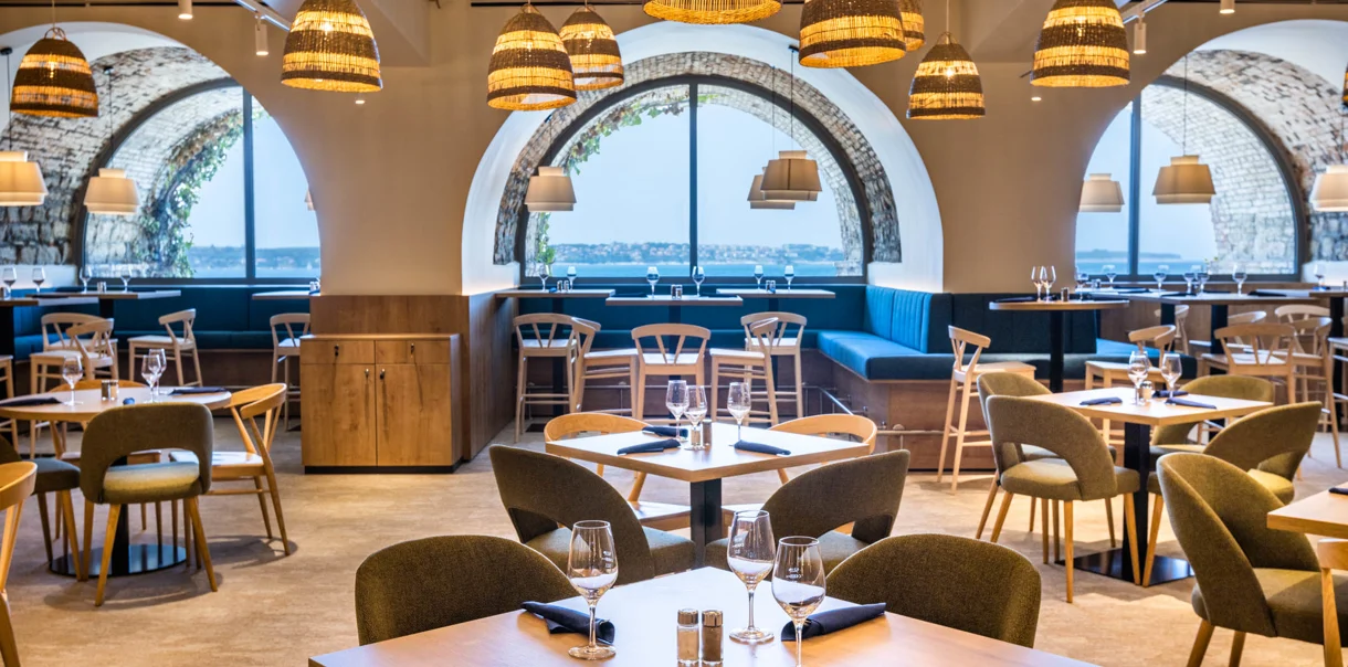 The renovated Restaurant Arkade is intended for guests of Hotel Vile Park to enjoy breakfast and dinner with the most beautiful views of the Slovenian sea.