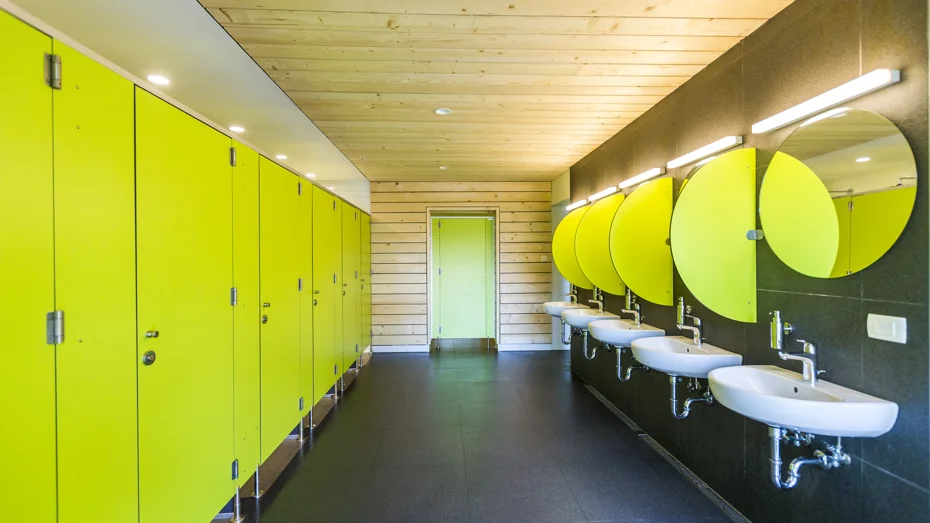 Četiri uređenih sanitarnih čvorova sa svime što modernim nomadima treba, uključujući praonicu i sušionicu rublja. Tu ćete pronaći i obiteljsku kupaonicu te kupaonicu prilagođenu osobama s invaliditetom. Mogućnost najma modernih privatnih kupaonica.