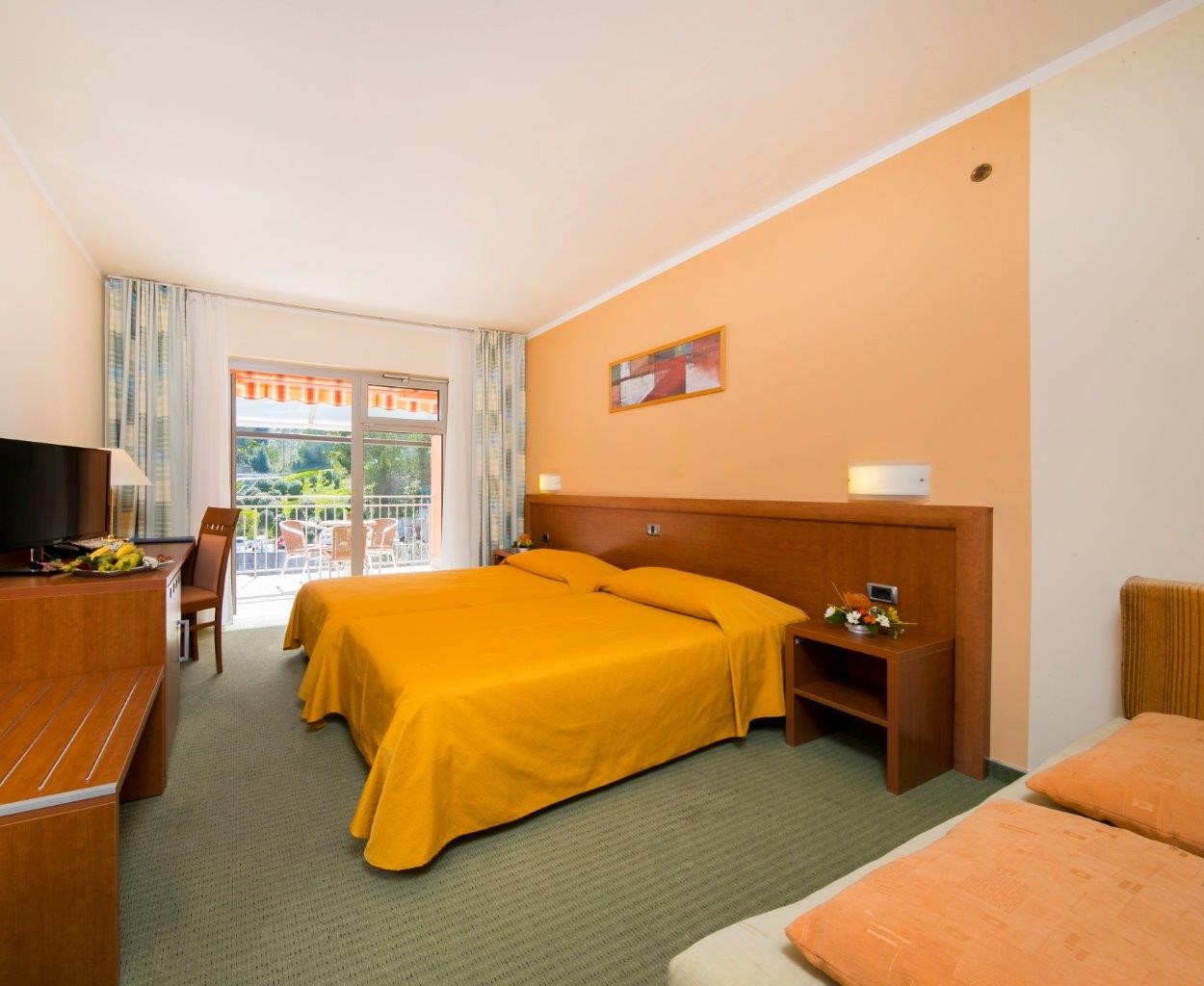 La camera offre: balcone, televisione, telefono, aria condizionata, bagno con doccia, minibar, servizio di sveglia. Dimensioni della camera: 30 m2 Dimensione Letti: 1 letto matrimoniale 180 x 200 cm + letto supplementare 80 x 190 cm Le camere al primo piano hanno il pavimento in parquet, altre camere hanno pavimenti in moquette, nel 3. piano le camere offrono letti separati 90 x 200 cm.