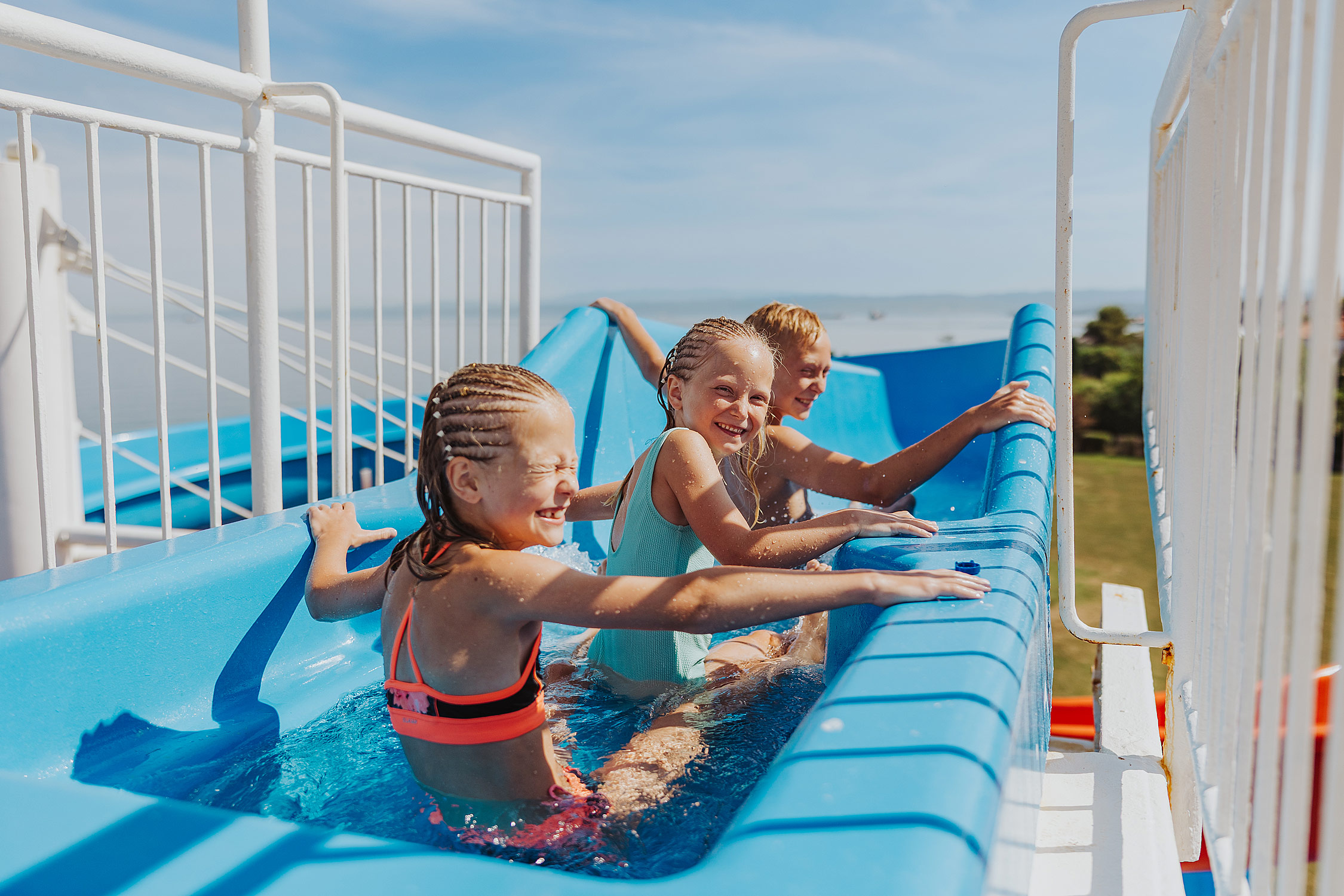Divertimento acquatico con scivolo