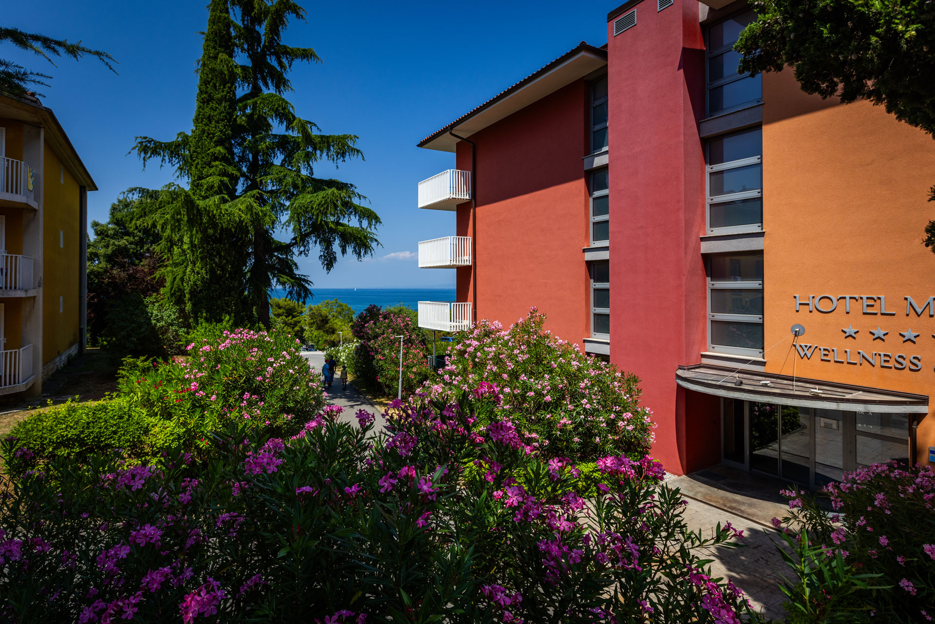 L’Hotel Mirta, che si trova in posizione leggermente rialzata rispetto alla spiaggia, offre una splendida vista sulla Baia di San Simone. Circondato dalla vegetazione mediterranea, è una vera oasi di relax vicino alla vivace cittadina mediterranea di Isola. Lasciatevi coccolare nel centro wellness con trattamenti benessere e riscaldatevi nel variegato mondo delle saune. Il clima mite vi aspetta per varie attività sportive all’aperto, in qualsiasi periodo dell’anno.Montate in bici o prendete i bastoncini da trekking, esplorate l’Istria slovena e fatevi conquistare dall’Hotel Mirta!
