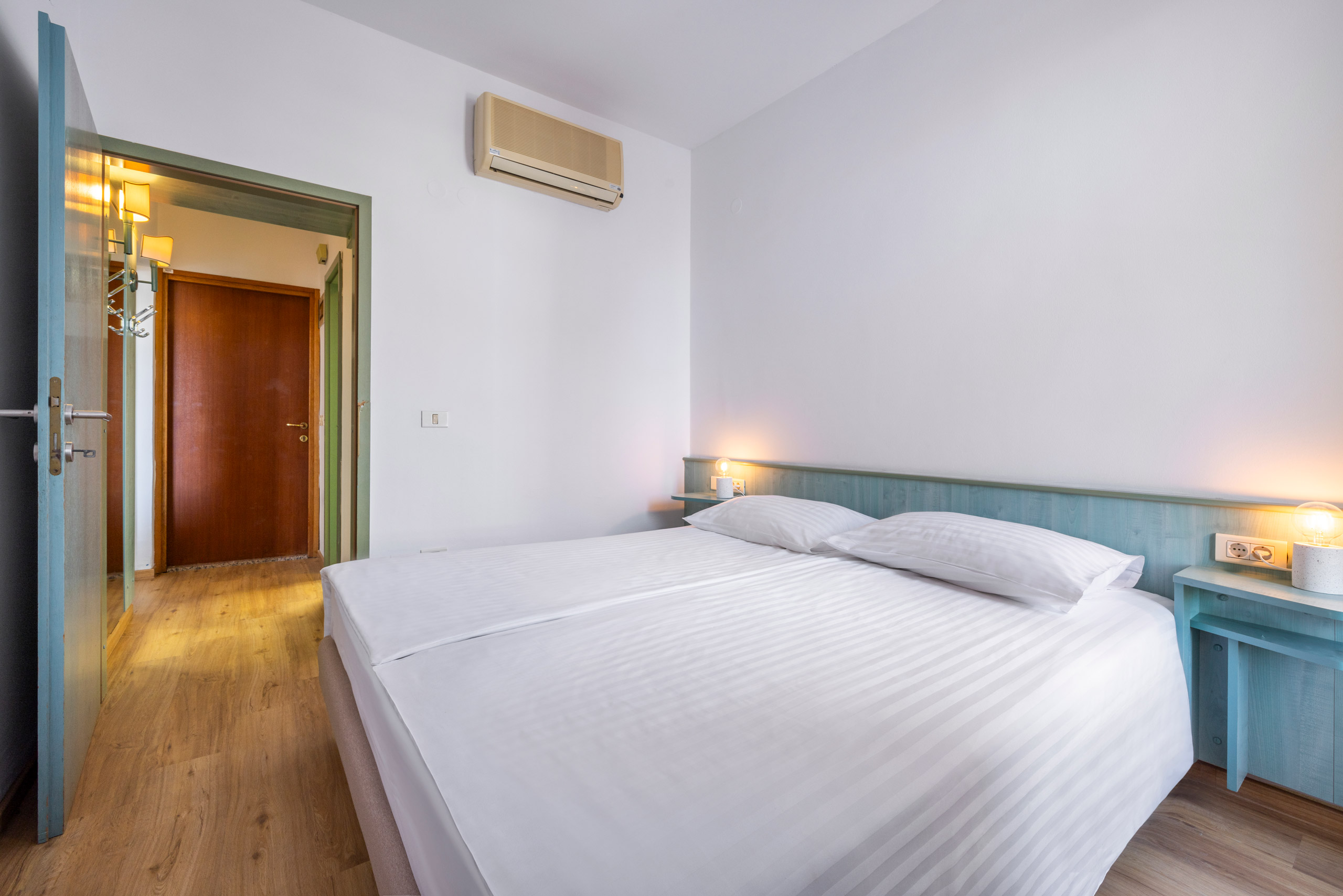 Suite indipendenti e confortevoli, in parte con vista sul mare. L'appartamento offre: camera da letto, soggiorno con divano letto, cucina, TV via cavo, telefono, bagno con doccia, asciugacapelli, aria condizionata, balcone. Dimensioni dell'appartamento: 39 m2 Dimensione letti: 1 letto matrimoniale 160 x 210 cm e 1 divano letto oppure letto supplementare 100 x 200 cm