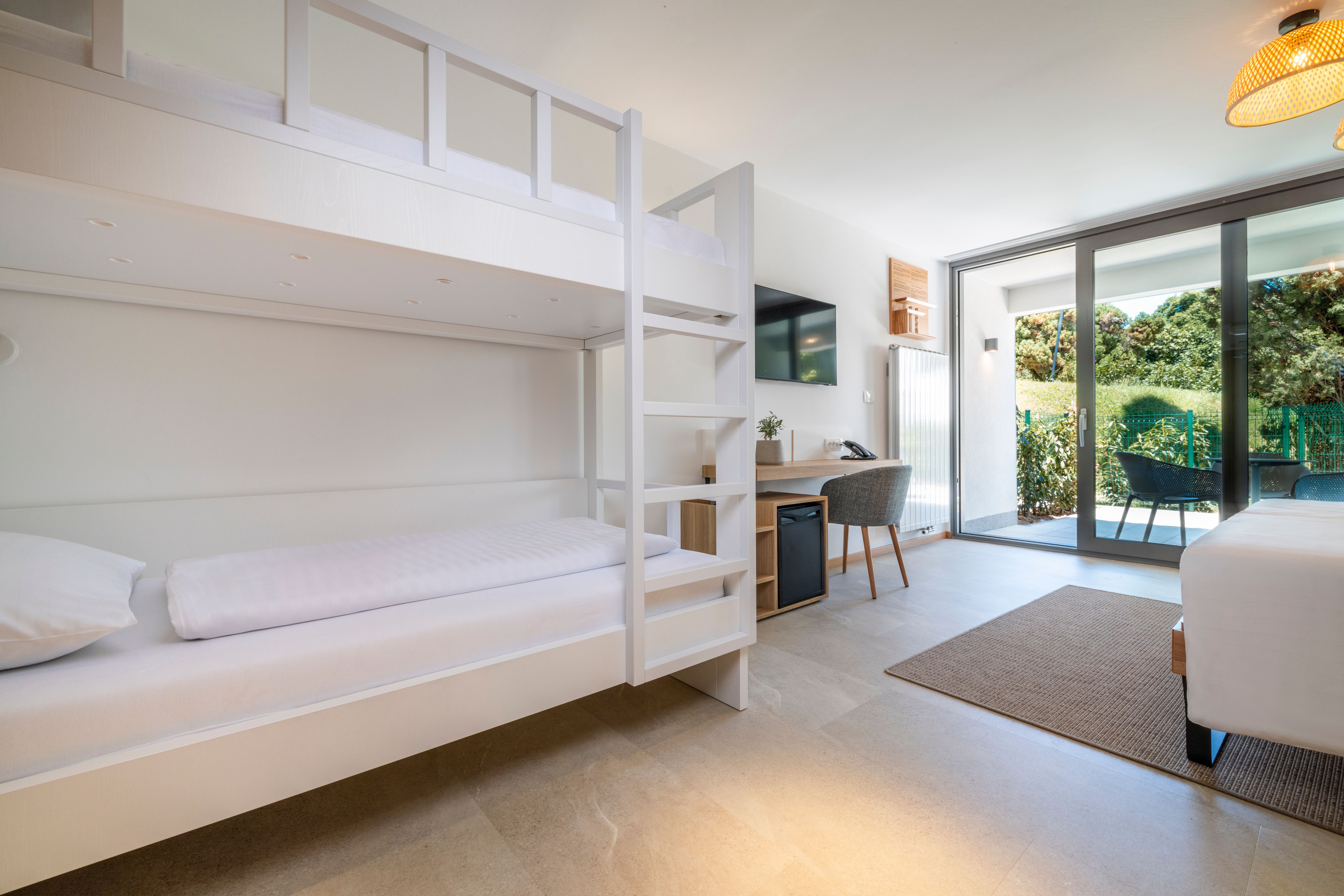La camera offre: aria condizionata, TV via cavo, telefono, scrivania, bagno con doccia, asciugacapelli, minibar. Dimensioni della camera: 34 m2 Dimensione letti: 1x letto matrimoniale (180 x 200) o 2x singole (90x200) e letto a castello (90x200) o divano (80x190).