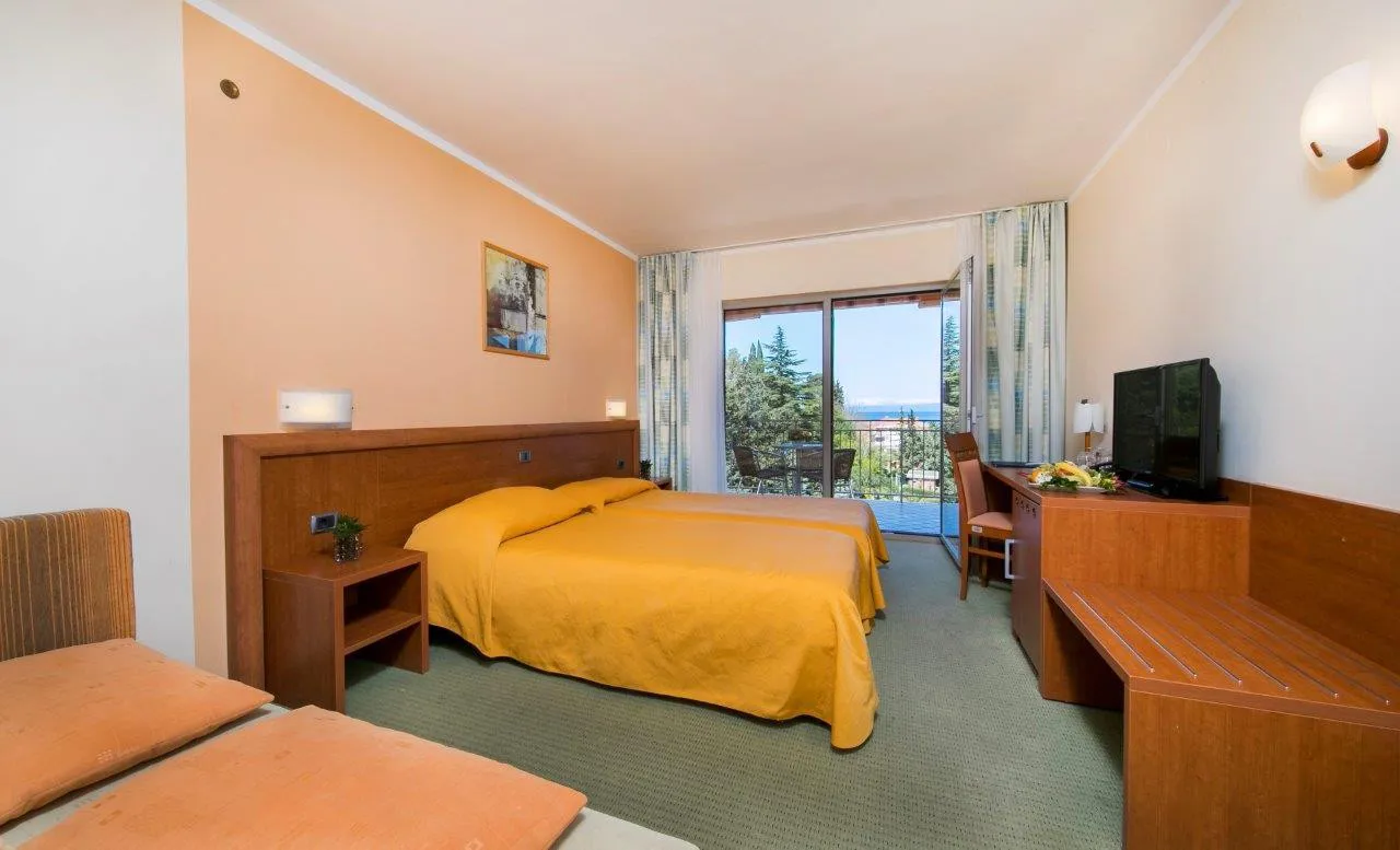 Preverite razpoložljivostPonudba v sobi: balkon, televizija, telefon, klimatska naprava, kopalnica s tušem, mini bar, storitev bujenja. Velikost sobe: 30 m2 Velikost postelje: 1 zakonska postelja 180 x 200 cm + dodatno ležišče 80 x 190 cm. Sobe v 1. nadstropju imajo parket, ostale sobe imajo tapison, v 3. nadstropju imajo ločena ležišča 90 x 200 cm.