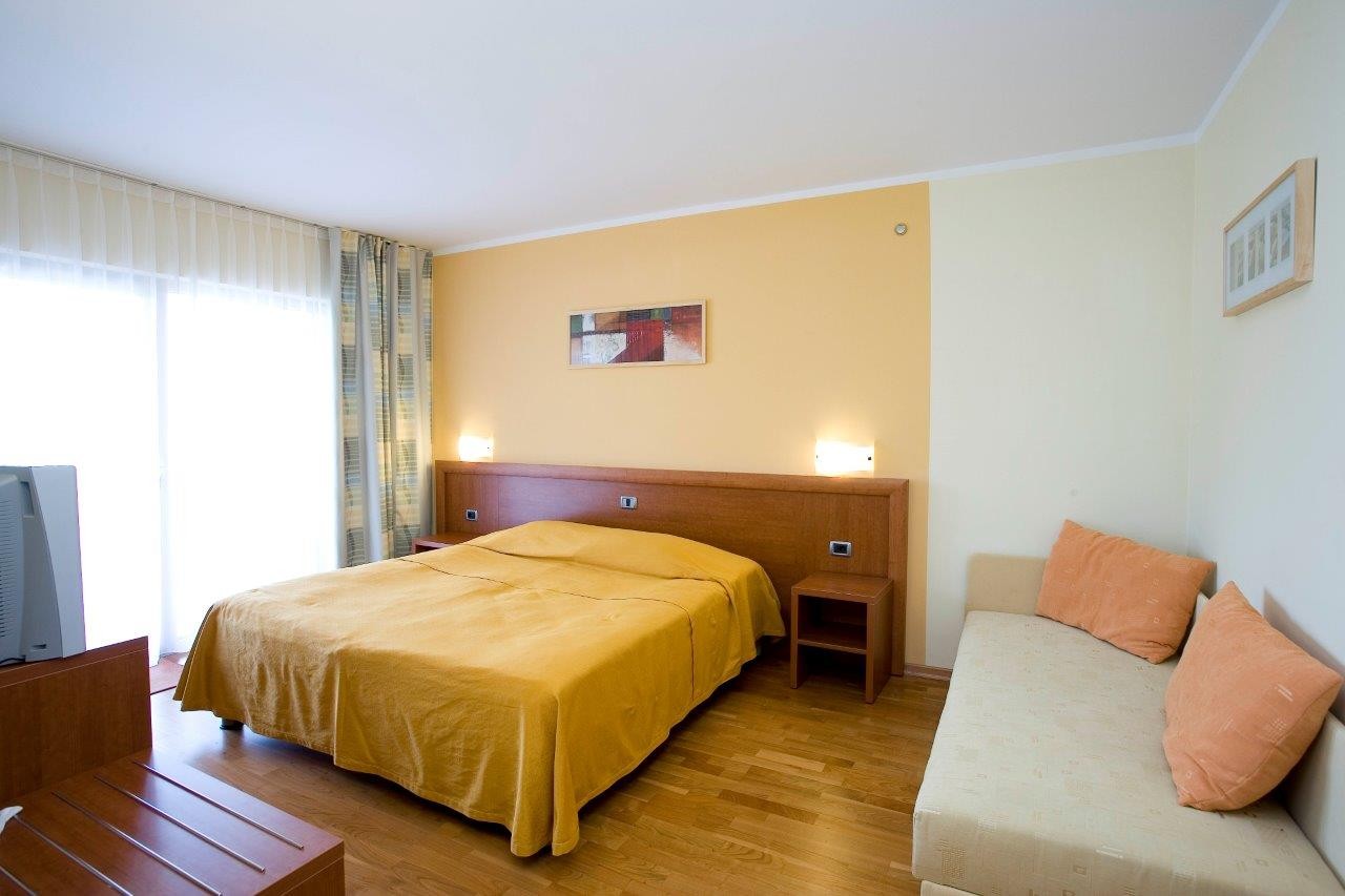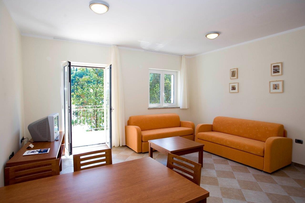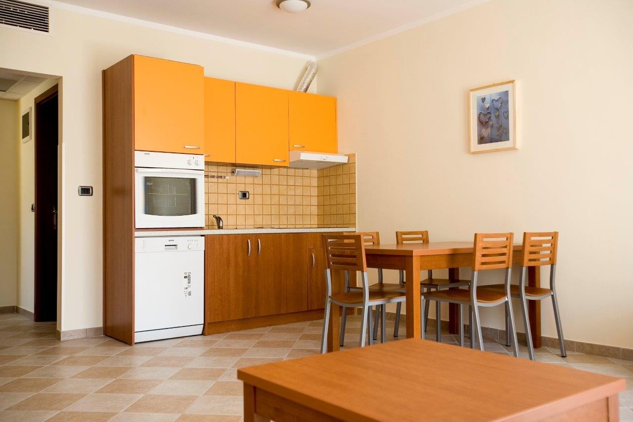 Apartma je opremljen z: klimatsko napravo, pomivalnim strojem, pomivalnim stojem, SAT televizijo in telefonom, sišilcem za lase Apartmaji so sestavljeni iz: dnevne sobe in spalnice, 4 osnovnih in 2 pomožnih ležišč, kopalnice s kadjo, kuhinjske niše, terase ali balkona. Velikost apartmaja: 52m2