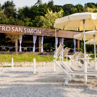 Hotelska restavracija San Simon v resortu s penzionskimi obroki. Na plaži se nahaja Bistro San Simon s ponudbo pijač in jedi po naročilu ter Bambus bar s ponudbo pijač (lokali na plaži obratujejo samo poleti).