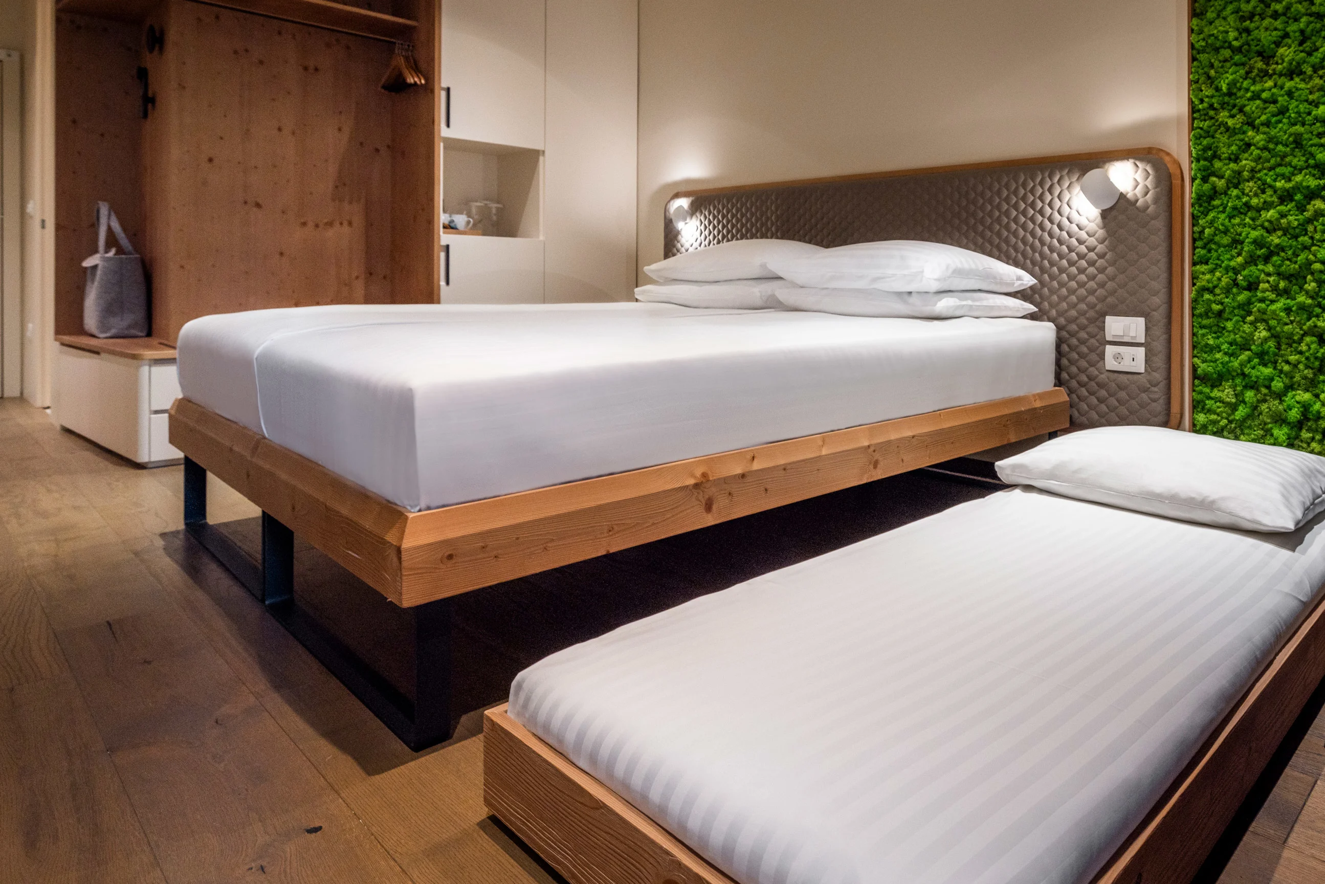 Udobna dvoposteljna soba z balkonom s pogledom na park. V sobi (20 m2) z dvema ležiščema širine 90 cm ali enim ležiščem širine 160 cm je pisalna miza in izvlekljivo ležišče primerno samo za otroke do 12.leta starosti, brezplačni WIFI dostop ter kopalnica s tušem in WC.