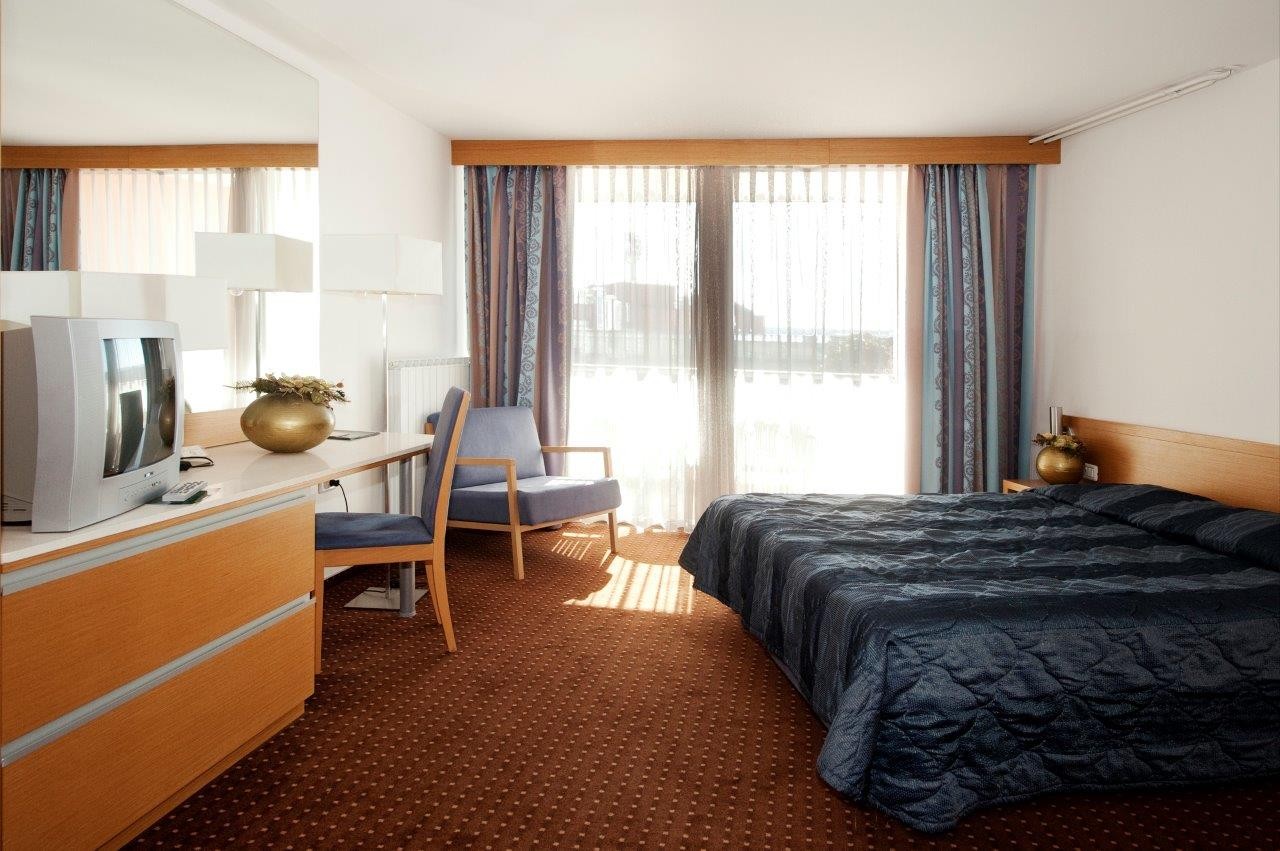 Ponudba v sobi: klimatska naprava, kabelska televizija, telefon, pisalna miza, kopalnica s tušem, sušilec za lase. Velikost sobe: 40 m2 Velikost postelje: 2 x zakonska postelja 160 x 210 cm Soba lahko sprejme dva otroka na dodatnih ležiščih do 15. leta starosti brezplačno.