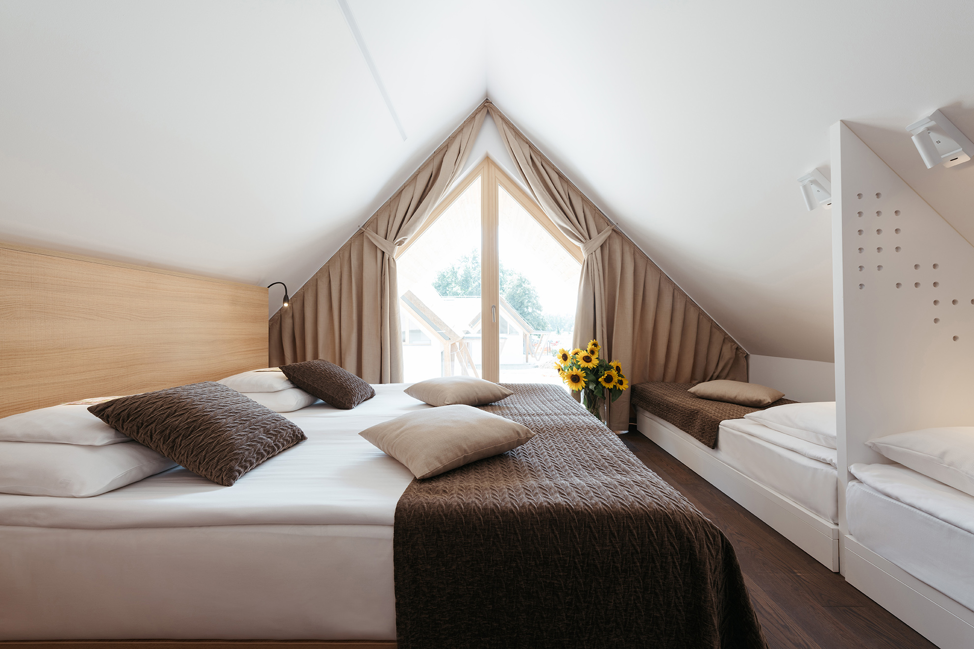 Dobrodošli v udobnih hišicah Prekmurske vasi Ajda, ki so jih navdahnile cimprače, tipične prekmurske hiške. Nove svetle hišice so krite s trstiko, v spalnem delu pa vas čakajo blazine, polnjene z ajdovimi luščinami. Dnevni prostor s teraso v pritličju izkoristite za druženje ali si naročite piknik košaro z lokalnimi jedmi v hotelski restavraciji. Prepustite se harmoniji v Prekmurski vasi Ajda!