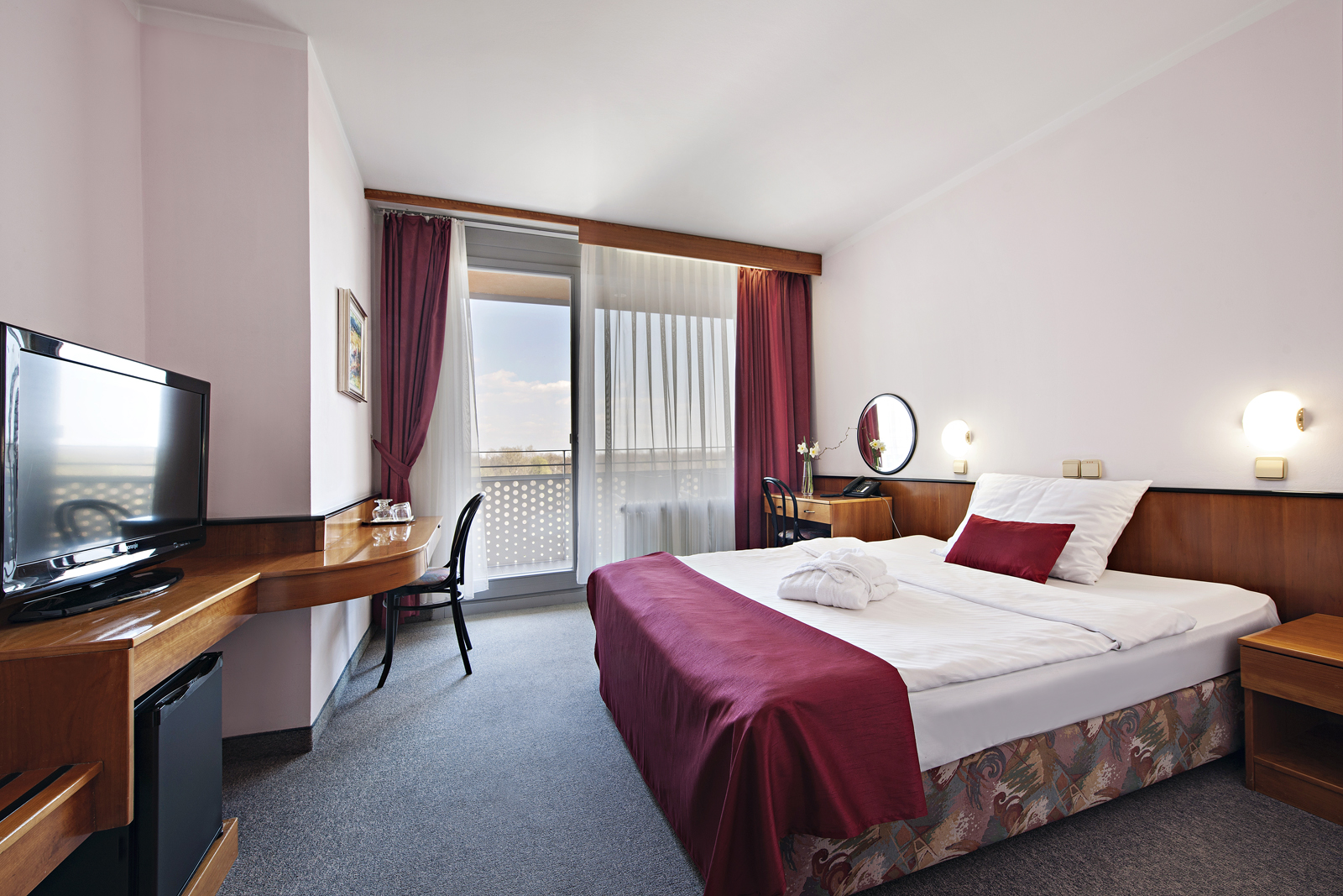 Udobna dvoposteljna soba economy s francoskim ležiščem (160 cm). V sobi veliki 19,2 m2 je kopalnica s tušem ali kadjo in WC-jem, pisalna miza.