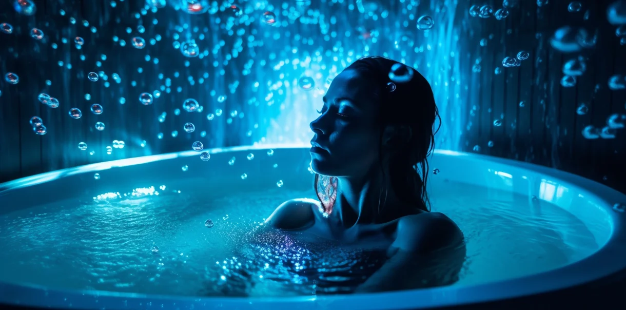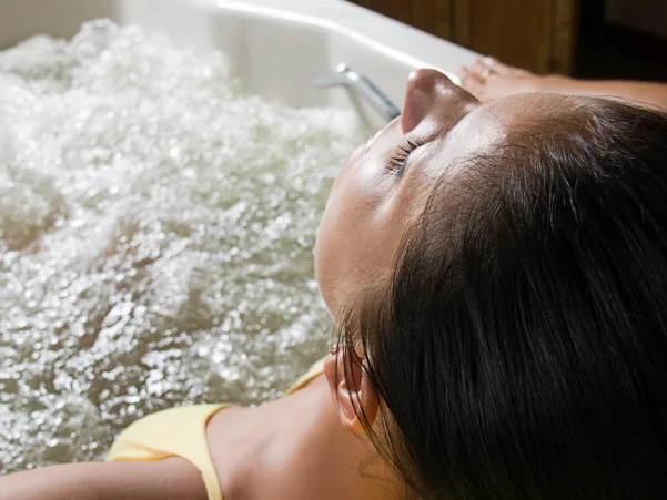 Kombination aus der Wirkung von warmem Wasser und einer Massage mit Wasserstrahl zur Verbesserung der Durchblutung und Entspannung.