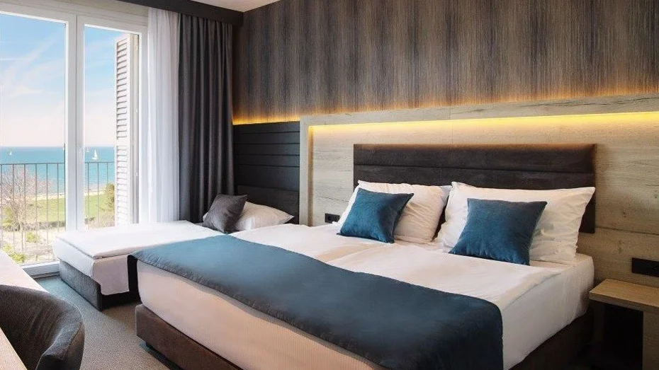 Zimmerausstattung: Badezimmer mit Dusche, Haartrockner, Klimaanlage, Telefon, Sat-TV. Zimmergröße: 23 m2 Bettgröße: 1 Doppellbett 160 x 200 cm + ausziehbare Couch 90 x 200 cm Das Zimmer bietet Platz auf Zusatzbett für ein Kind bis 15 Jahre kostenlos zur Verfügung.
