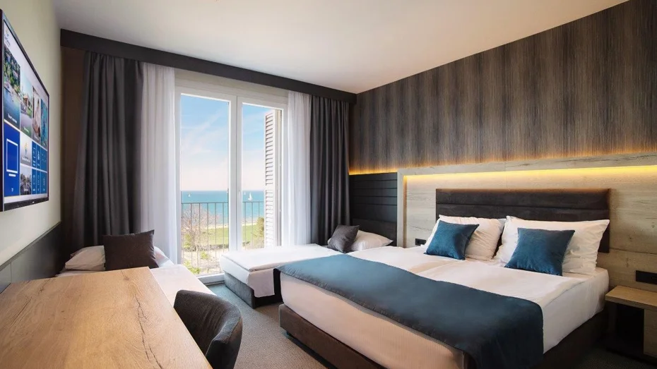 Zimmerausstattung: Badezimmer mit Dusche, Haartrockner, Klimaanlage, Telefon, Sat-TV. Zimmergröße: 23 m2 Bettgröße: 1 Doppellbett 160 x 200 cm + ausziehbare Couch 90 x 200 cm Das Zimmer bietet Platz auf Zusatzbetten für zwei Kinder bis 15 Jahre kostenlos zur Verfügung.