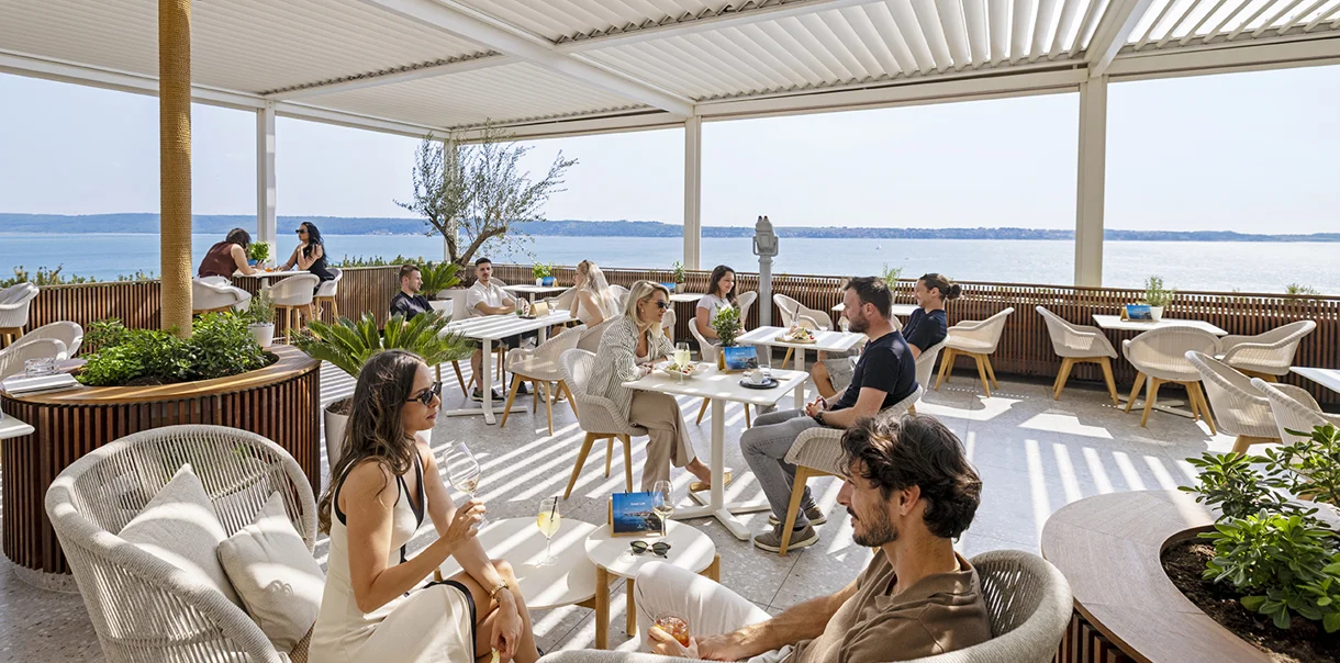 Im Cafe Grand im Grand Hotel Bernardin genießen Sie einen einzigartigen Blick auf die Bucht von Piran. Genießen Sie die Sonne auf der renovierten, eleganten Terrasse oder verbringen Sie romantische Abende bei Klaviermelodien – dies ist der ideale Ort zum Entspannen und Plaudern bei einem Kaffee, Cocktail oder einer unserer Gourmet-Köstlichkeiten.