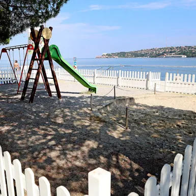 - Camping-Strände auf einer gepflegten und gesicherten Schwimmbadanlage mit einfachem Zugang zum Meer, für alle Generationen geeignet.