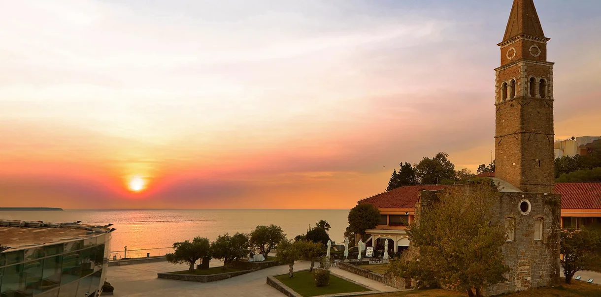 The Bernardin Resort is situated between Piran – one of the oldest cities in Slovenia, and the port of roses – Portorož. The main part of the Resort is decorated with the bell tower and former monastery church St. Bernardine from the 15th century that speak about the rich cultural heritage of this place. The remains of the former monastery comprise a well-preserved and eminent bell tower, the church presbytery and the retaining wall complete with arches. The monastery and the church date back to the 15th century and are dedicated to St Bernardine of Siena. The positive energy together with the beneficial Mediterranean climate, sea and beautiful view are still shaping the destiny of this place, which once was a shelter of the Franciscan monks. Activities in the monastery ended in the 19th century and the Austrian military later used the complex as a stronghold, from which soldiers defended the bay.