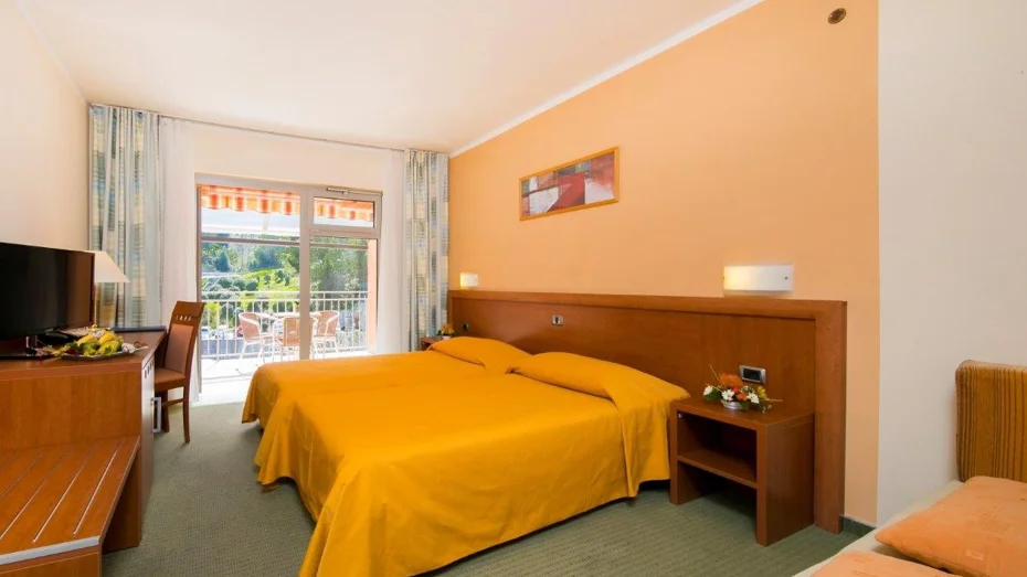Room facilities: balcony, television, telephone, air conditioning, bathroom with shower, minibar, wake-up service. Room size: 30 m2 Bed size: 1 double bed 180 x 200 cm + extra bed 80 x 190 cm. Rooms on first floor have parquet floor, other rooms have carpeted floors, the rooms on the third floor have separate beds 90 x 200 cm.