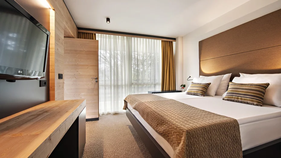 Renovated, spacious suite with balcony and lake view. The 50 m2 suite features a bedroom with a bed 180 cm wide, a bathroom with shower and toilet and a spacious living room with a TV, comfortable sofa suite, dining table, kettle for tea or coffee and free Wi-Fi. All suites were renovated in April 2017 using natural material from the neighbouring Slovenian towns.