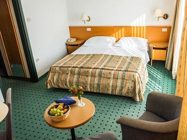 In front of the hotel, guests may enjoy the outdoor pool and well-kept beach. The renovated Hotel Vile Park includes a swimming pool and charming children's playsets with water effects. The grassy part of the shore features a beach with loungers and beach umbrellas, and a bar with a wide range of refreshing drinks.