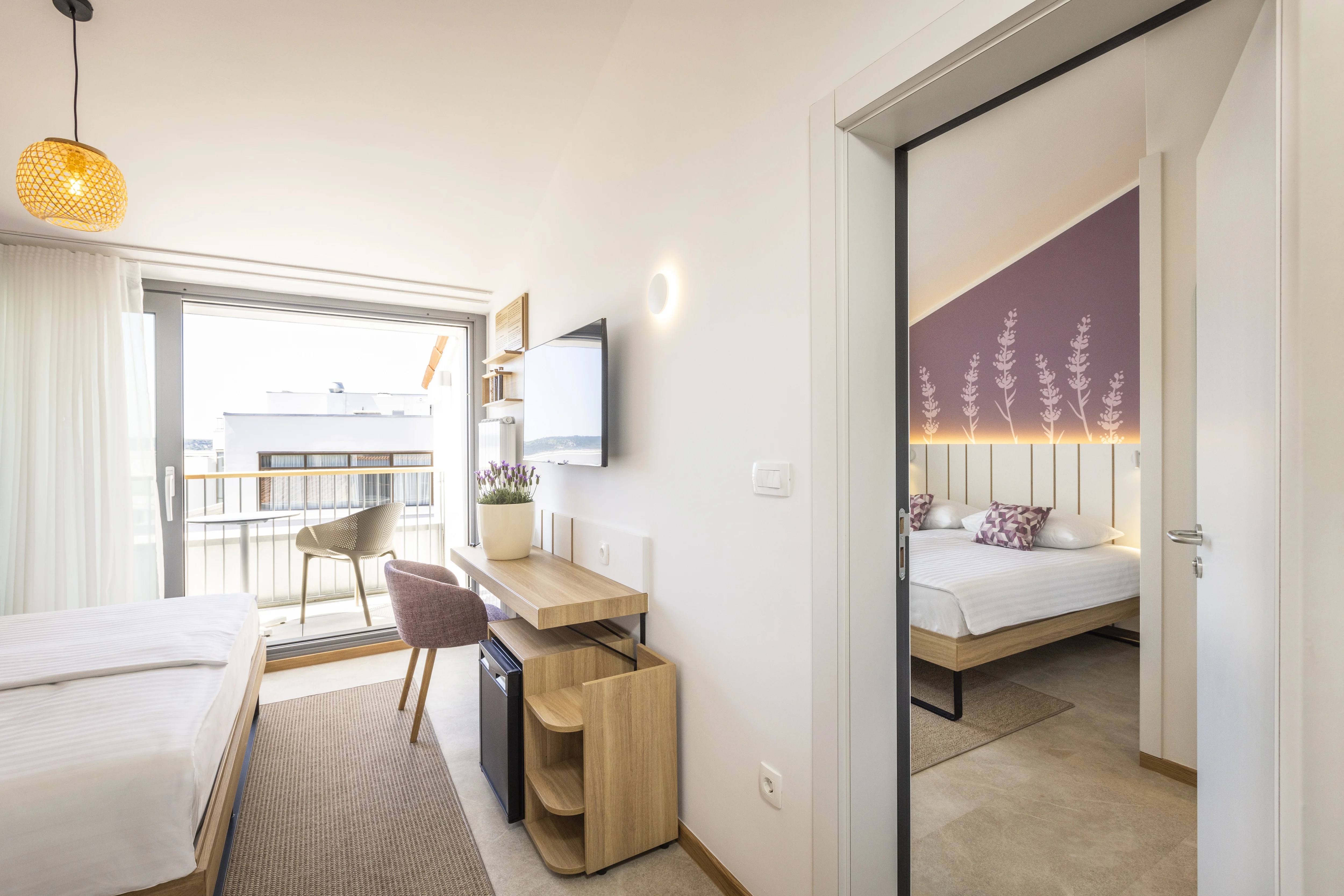Room facilities: air conditioning, cable TV, telephone, desk, bathroom with shower, hairdryer, minibar. Room size: 2 interconnected double rooms (44 m2) Bed size: 2 x double bed 160 x 210 cm (or single beds).