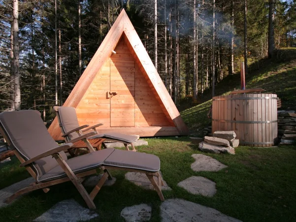 Ljupke drvene kućice savršen su izbor ako želite samo udvoje pobjeći od vreve i obveza svakidašnje rutine. Spavanje u prirodi ovdje dobiva novo značenje. Kućice su izgrađene od ekološkog, neobrađenog ariša i prekrivene šindrama od ariša. Udoban krevet izrađen je od potpuno prirodnih materijala. U kućici sve miriši po drvu. Ispred kućice mame lijepo uređena okolica s karakterističnim alpskim biljem, drvena kada s grijanjem na drva i udobne drvene ležaljke.