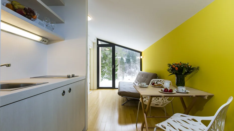 Obiteljske, moderne i estetski dizajnirane mobilne kućice na rubu šume oduševljavaju i roditelje i djecu. Iz kućica na uzvisini pruža se prekrasan pogled, a gostima omogućuju potpunu privatnost i udobnost. Kućice su izrađene od drva i prirodnih materijala koji „dišu“. Veliki stakleni panoramski prozori pružaju osjećaj prostranosti i boravka u prirodi. Kućice su okružene zelenilom i u ljetnim mjesecima pružaju ugodnu sjenu i pogled koji će vas sigurno ostaviti bez daha.