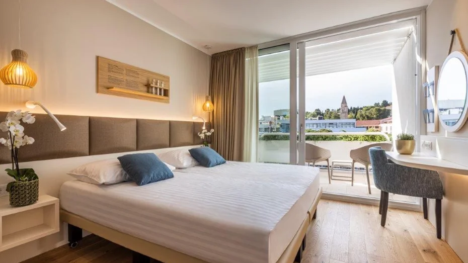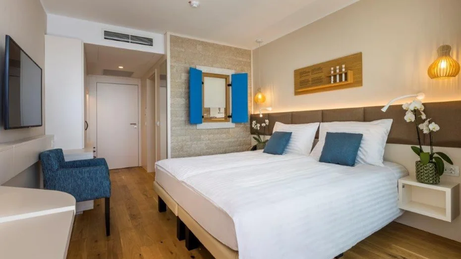 Dvokrevetna soba, na sjevernoj strani hotela s pogledom na luku. Sadržaji sobe: balkon, satelitska televizija, telefon, radio, minibar, klima uređaj, pisaći stol, kupaonica - tuš, sušilo za kosu, set toaletnih potrepština, sef, usluga buđenja / alarm. Veličina sobe: 24 m2 Veličina kreveta: 1 bračni krevet 160 x 200 cm ili odvojeni kreveti 100 x 200 cm