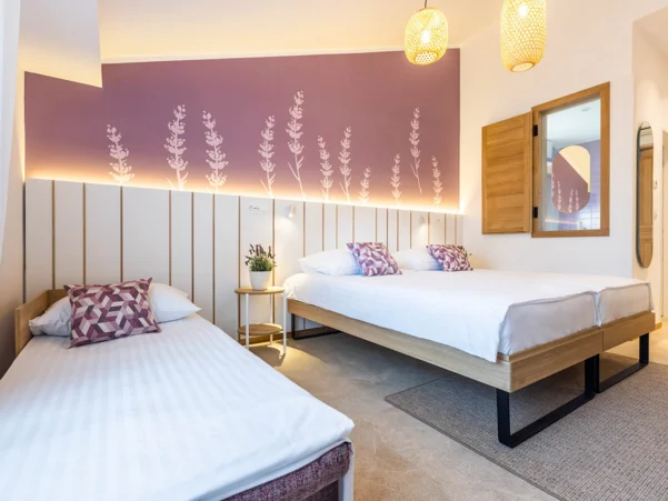 Sadržaji sobe: klima uređaj, kabelska televizija, telefon, pisaći stol, kupaonica s tušem, sušilo za kosu, minibar. Veličina sobe: 22 m2 Veličina kreveta: 2 odvojena kreveta (Twin) 90 x 200 cm + pomoćni krevet 80 x 190 cm Ova soba može primiti jedno dijete na pomoćnom krevetu do 12 godina.