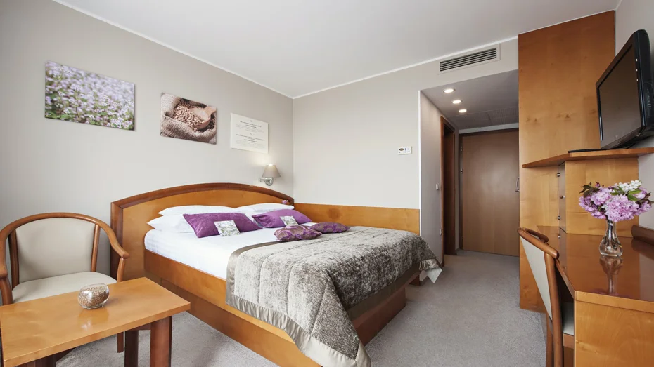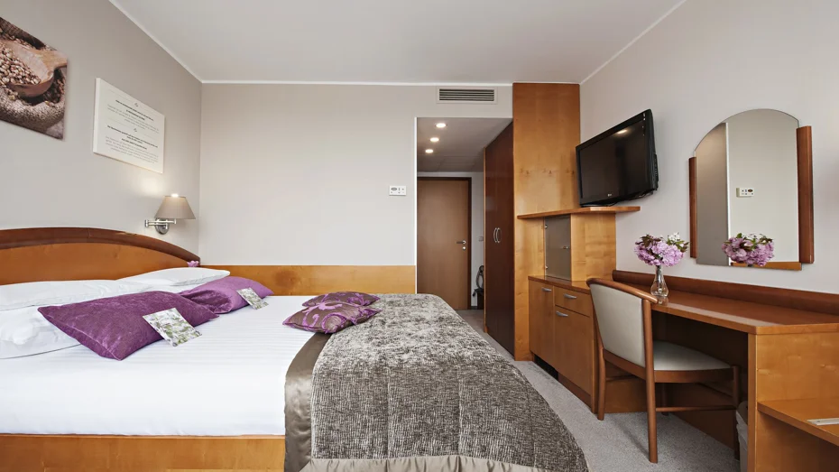 Economy soba ( 15,5 m2) s francuskim ležajem širine 150 cm i balkonom s pogledom na park. U sobi se nalaze kupaonica s tušem i WC-om, pisaći stol i jednosjed.