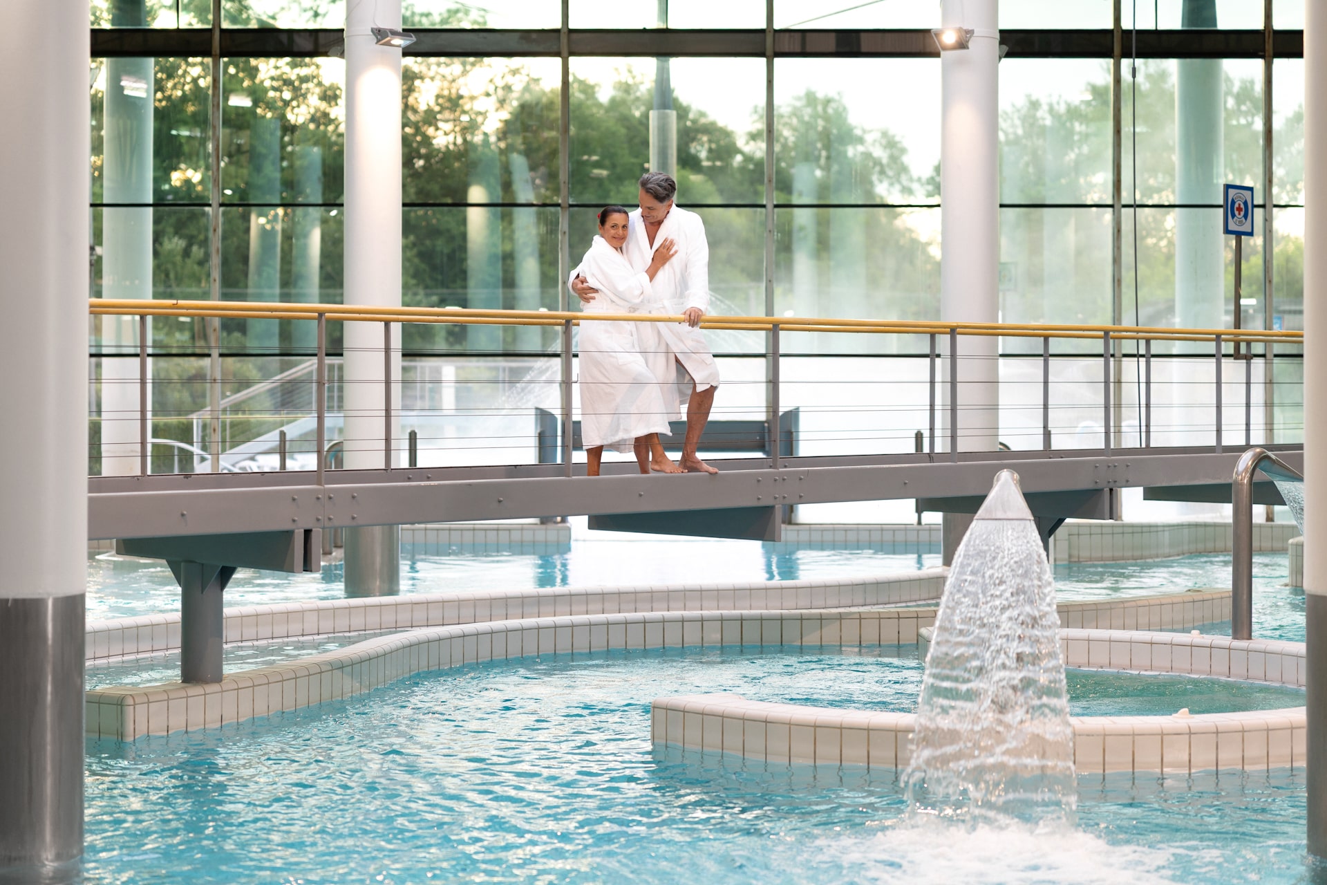 Bazeni s termalnom vodom opustit će vas, a istodobno su blagotvorni kod problema s lokomotornim sustavom. Posebno ćete uživati u bazenima s podvodnim masažama.
