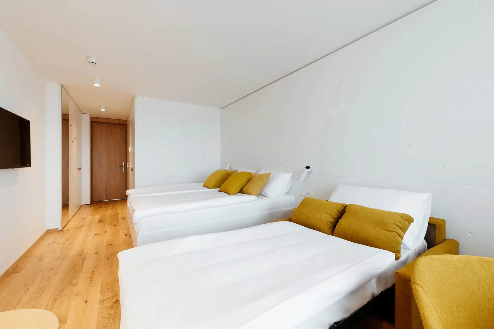 Udobna deluxe dvokrevetna soba s ležajem širine 180 cm ili odvojenim ležajevima širine 90 cm. U sobi veličine 23,5 m2 nalazi se kupaonica s kadom i WC-om, pisaći stol i jednosjed.