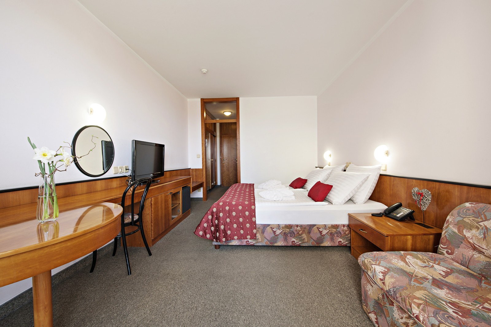 Udobna dvokrevetna soba sa balkonom i ležajem širine 200 cm ili odvojenim ležajevima širine 100 cm. U sobi veličine 24,45 m2 nalazi se kupaonica s kadom i WC-om, pisaći stol i jednosjed (pomoćni ležaj).