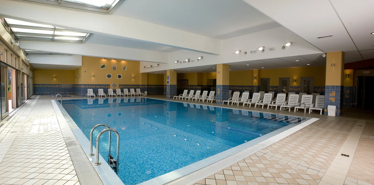 La piscina coperta con acqua di mare riscaldata dell'Hotel Salinera offre 180 mq di superficie balneare. Il complesso dispone anche di una piscina per bambini e di due vasche idromassaggio più piccole. Da qui si accede all’ampia terrazza esterna soleggiata con lettini e ombrelloni.