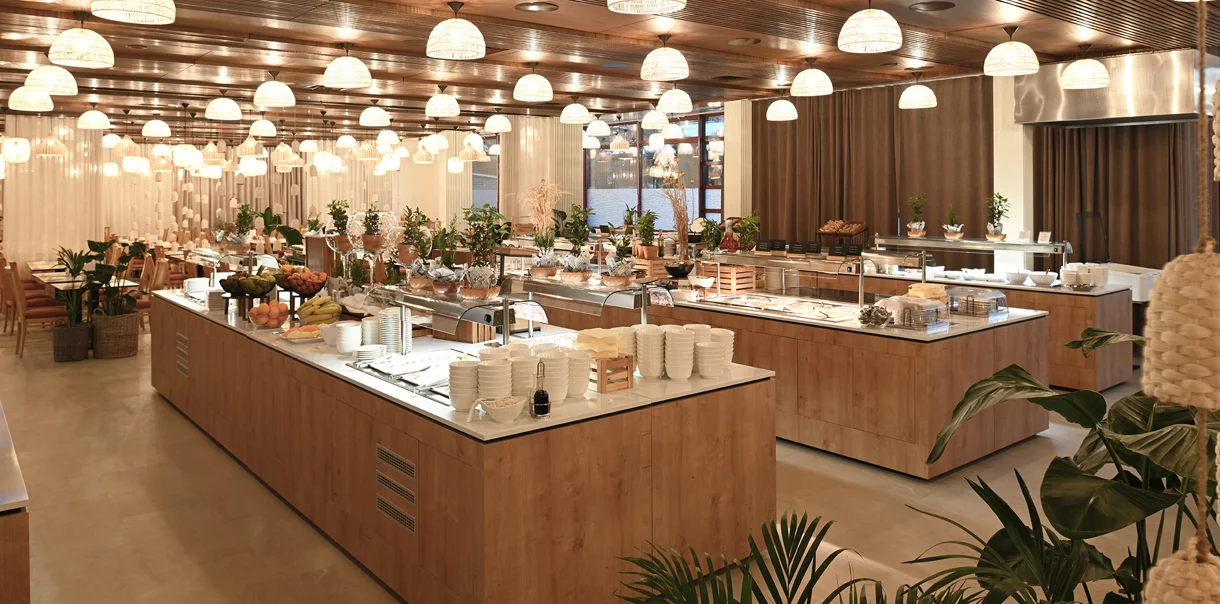 Vi diamo il benvenuto al rinnovato Ristorante Termal, che può ospitare fino a 350 persone. Si veste di tonalità naturali e la sua specialità sono senza dubbio le attraenti lampade a sospensione, decorate con un elemento unico della tradizione artigianale: l’arte locale di intrecciare la paglia e lo scartocciamento del granoturco. Nella piacevole atmosfera del ristorante dell’hotel, ogni mercoledì vi vizieremo con la cena del Prekmurje, mentre ogni giorno gli ospiti possono gustare le prelibatezze del buffet dai colori locali.