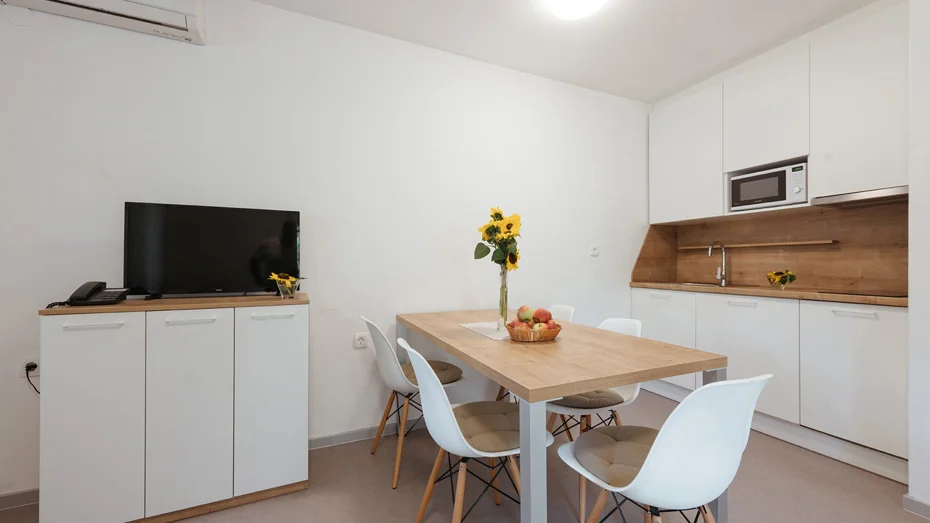 In vacanza nel complesso di Appartamenti Prekmurska vas, potrete organizzare la giornata a modo vostro e, allo stesso tempo, godervi il comfort dell’hotel con la mezza pensione delle autentiche specialità del Prekmurje al ristorante dell’ Hotel Termal, coccolarvi nel centro benessere dai colori del Prekmurje, il Wellness Thermalium, e nelle piscine termali.