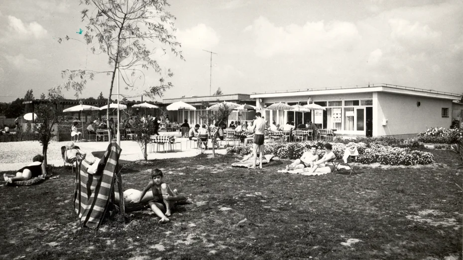 - 1962: 28. julij: prva uradna otvoritev. Zgrajeni so prvi leseni objekti z 8 kabinami in sanitarijami. Gostinsko podjetje Zvezda posluje v improviziranem lesenem bifeju.