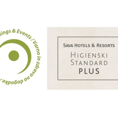 Za vašo varnost in zaščito smo v skupini Sava Hotels & Resorts poskrbeli za pripravo in vpeljavo številnih higiensko zaščitnih ukrepov. Pri tem smo upoštevali priporočila NIJZ in WHO. Skupaj z našim zdravstvenim osebjem smo te ukrepe še nadgradili in jih poimenovali Higienski Standard Plus. Ponosni smo, da smo za to prejeli tudi certifikat "Varno in zdravo na dogodke".
