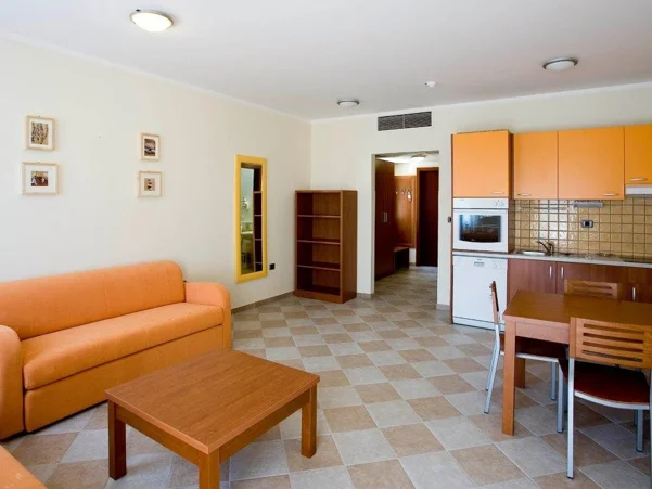 Apartma je opremljen z: klimatsko napravo, pomivalnim strojem, pomivalnim stojem, SAT televizijo in telefonom, sišilcem za lase Apartmaji so sestavljeni iz: dnevne sobe in spalnice, 4 osnovnih in 2 pomožnih ležišč, kopalnice s kadjo, kuhinjske niše, terase ali balkona. Velikost apartmaja: 52m2