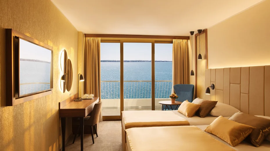 Ponudba v sobi: balkon, SAT TV, radio, telefon, brezžični internet, pisalna miza, mini bar, klimatska naprava, kopalnica – tuš ali kad, sušilec za lase, paket za osebno higieno, kopalni plašč, copati, storitev bujenja/budilka, 24-urna sobna postrežba. Velikost sobe in kopalnice 23 m2 Velikost postelje: 1 zakonska postelja 180 x 200 cm ali 2 ločeni postelji 100 x 200 cm.
