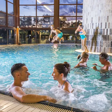 Spodnji del notranjih termalnih bazenov Hotela Ajda ponuja vodno zabavo, zgornji del pa je namenjen sproščanju. Objemu termo-mineralne vode se lahko prepustite tudi v velikem zunanjem bazenu ali v črnih kopelih.