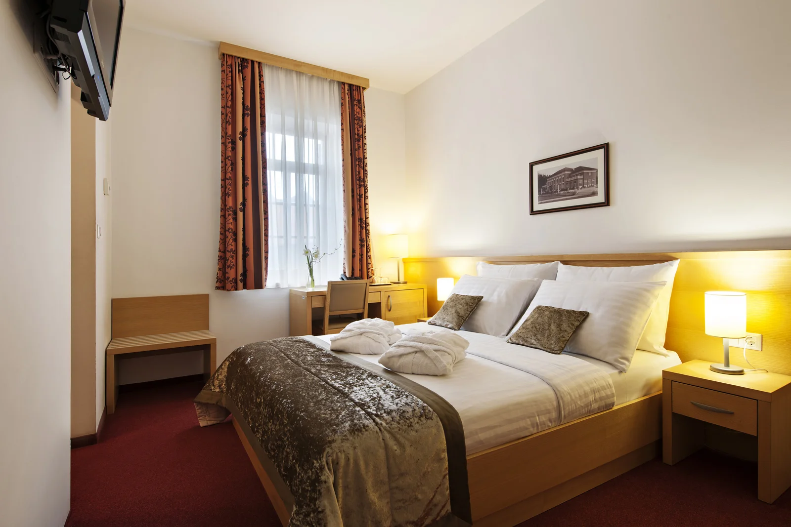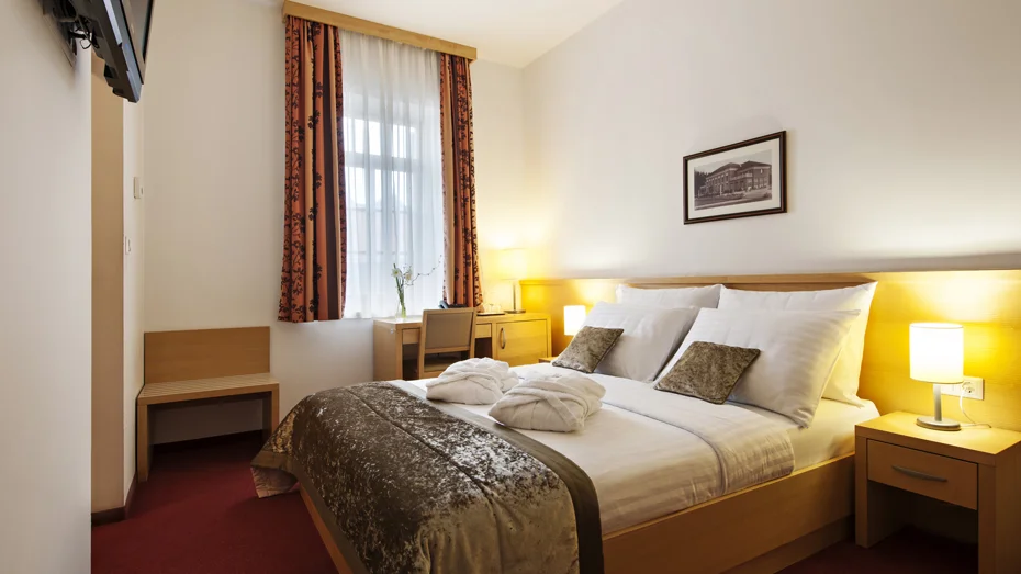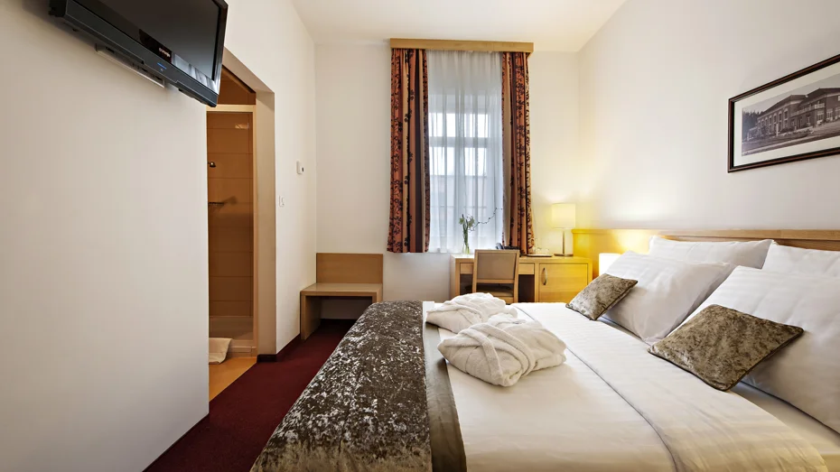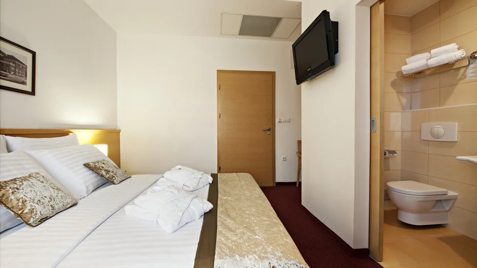 Dvoposteljna soba z ležiščem širine 160x200 cm in pogledom na Muro. V sobi (16,40 m2) je kopalnica s kadjo s tušem in WC-jem ter pisalna miza.